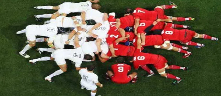 Rugby union scrum packs how many players per team?