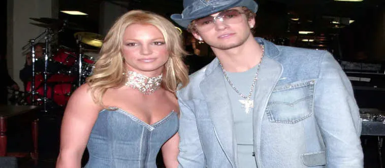Which pop star dated Justin Timberlake and wore a denim dress in 2001?